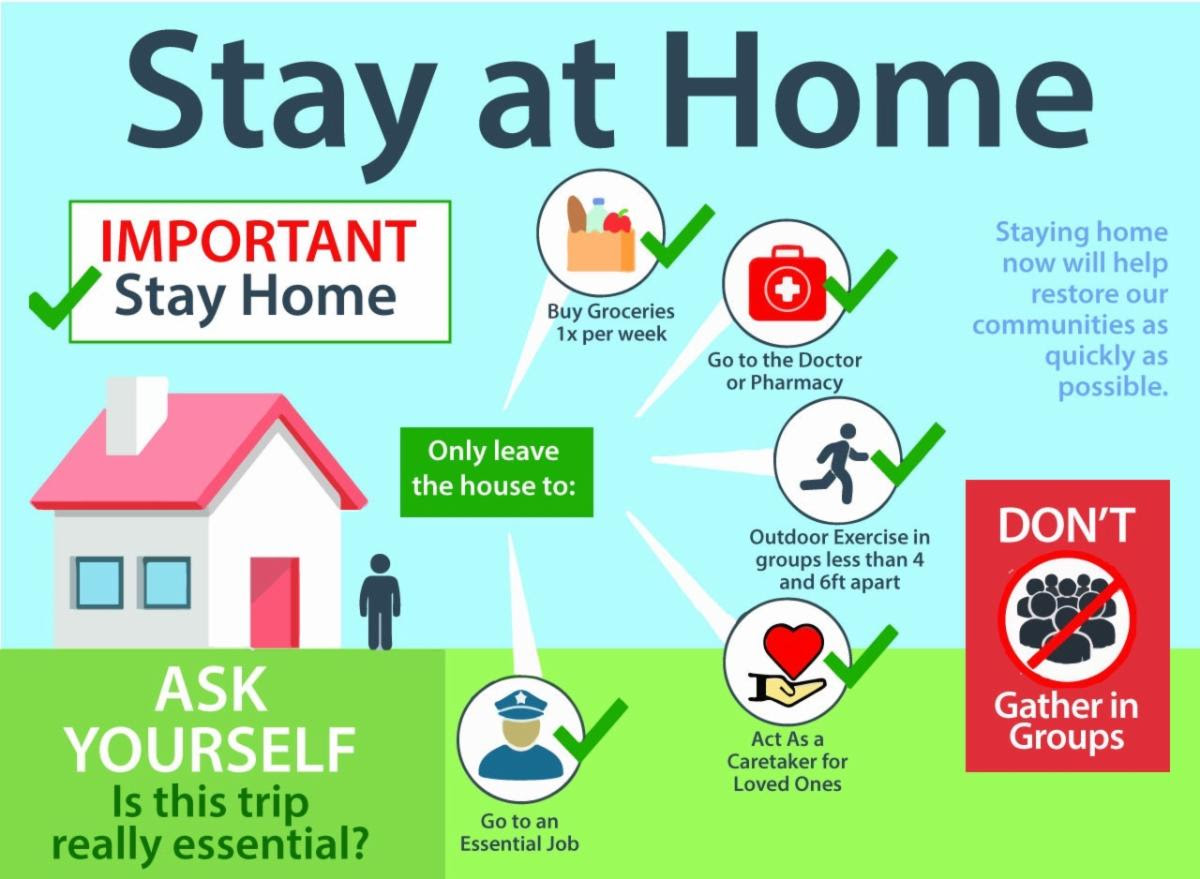 The "Safer at Home" Order calls for residents to restrict outings to essential business only and allows for other specific essential tasks.